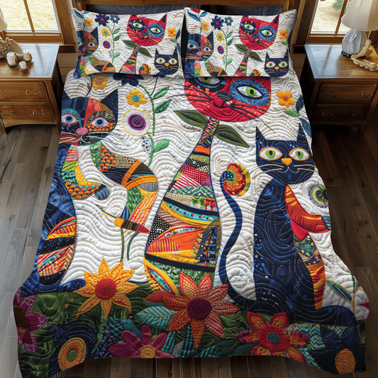 Playful Cats In The Garden 3-Piece Quilted Bedding Set NCU0PD327