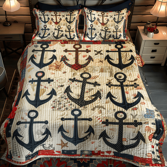 Maritime Anchors 3-Piece Quilted Bedding Set NCU0TH1214