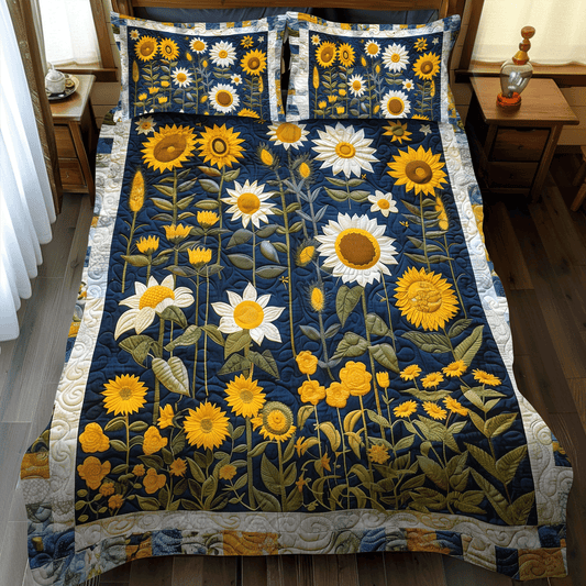 Sunflower Night 3-Piece Quilted Bedding Set NCU0TH1005