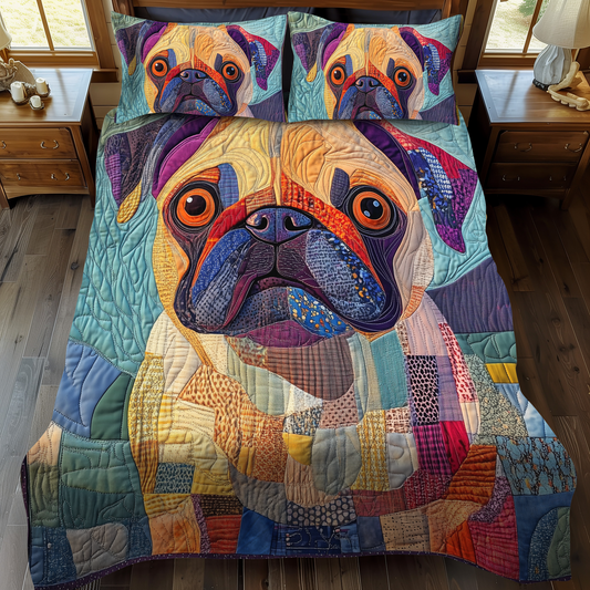 Squishy Pug Love 3-Piece Quilted Bedding Set NCU0DK1554