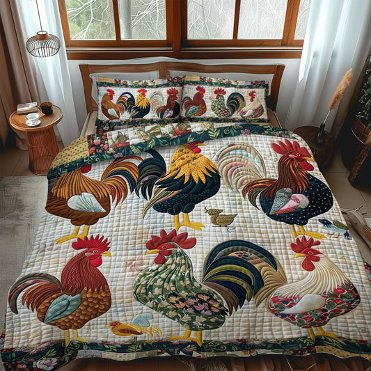 Rural Rooster 3-Piece Quilted Bedding Set NCU0TH891