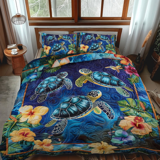 Hawaiian Bliss Turtle 3-Piece Quilted Bedding Set NCU0TL479