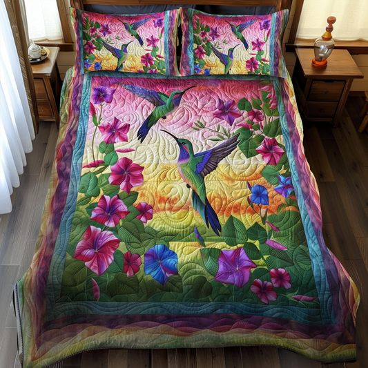 Hummingbird With Sunset 3-Piece Quilted Bedding Set NCU0PT027