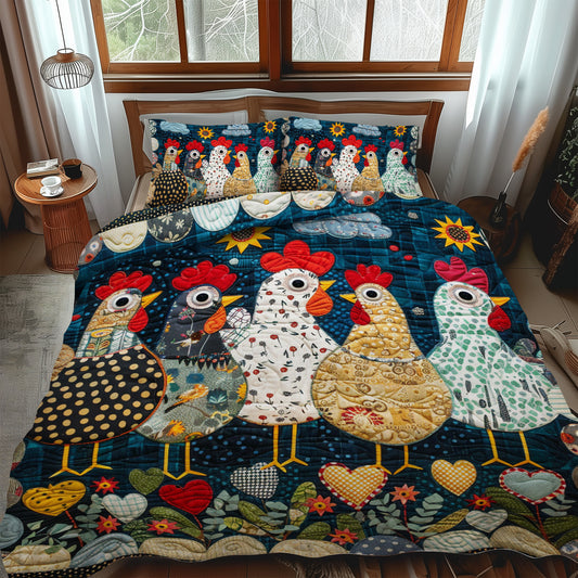 Nighttime Hens 3-Piece Quilted Bedding Set NCU0TH888