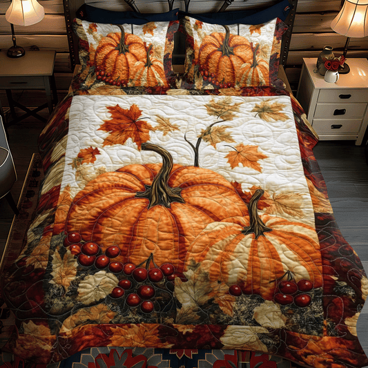 Pumpkin Thanksgiving Spirit 3-Piece Quilted Bedding Set NCU0PD703