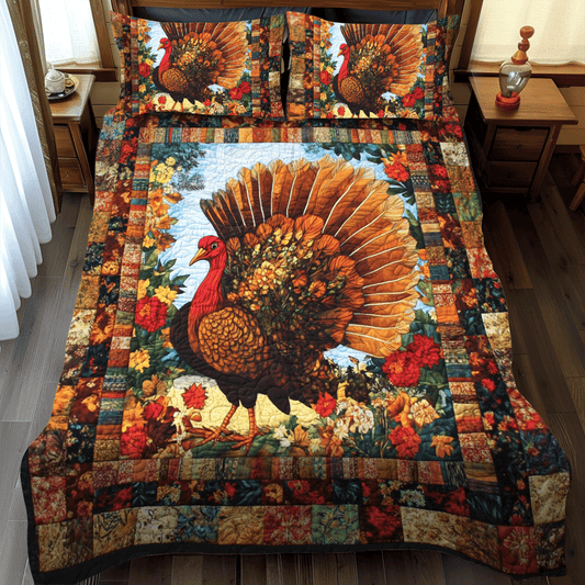 Turkey Thanksgiving Charm 3-Piece Quilted Bedding Set NCU0PD702