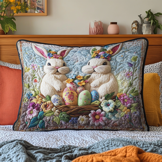 Easter Bunny Pair Quilted Bedding Pillow Case NCU0NT4155