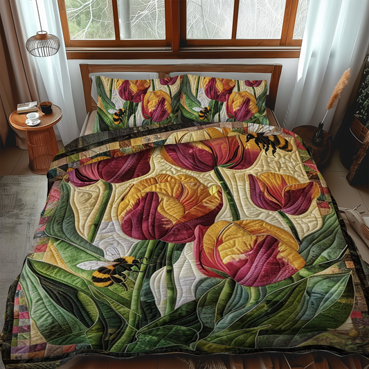 Honeybee Flower Garden 3-Piece Quilted Bedding Set NCU0NT011