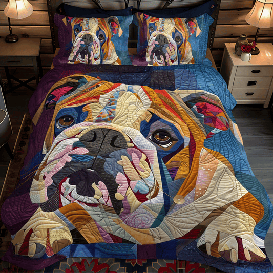 Cozy Bulldog Charm 3-Piece Quilted Bedding Set NCU0DV1681