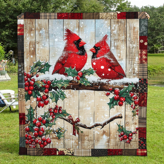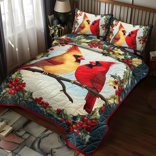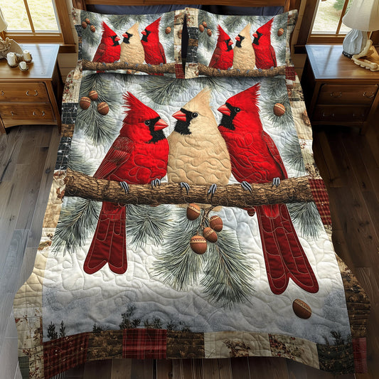 Cozy Winter Cardinals 3-Piece Quilted Bedding Set NCU0TL1498
