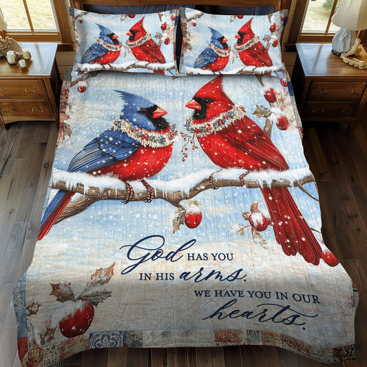 Snowy Cardinal Serenity 3-Piece Quilted Bedding Set NCU0TL1499