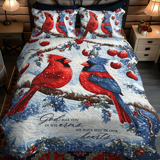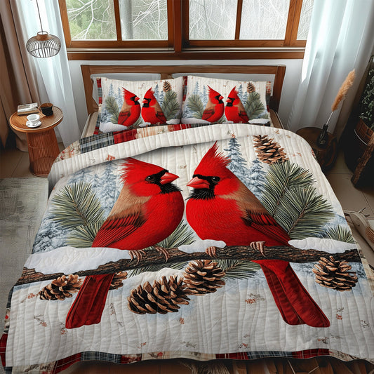 Snowy Cardinal 3-Piece Quilted Bedding Set NCU0TL1496