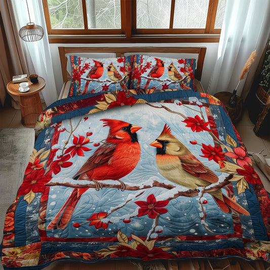 Winter Cardinal Love 3-Piece Quilted Bedding Set NCU0TH925
