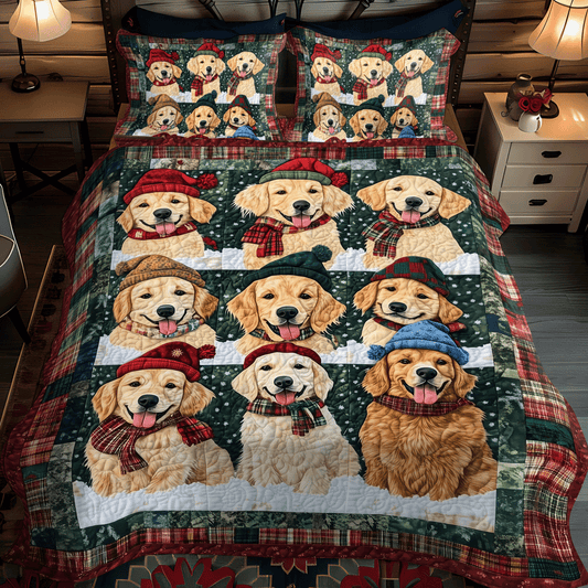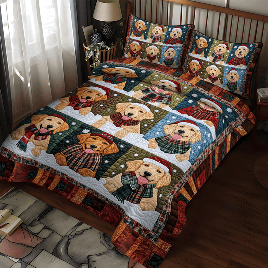 Snow Golden Puppy 3-Piece Quilted Bedding Set NCU0TH1634