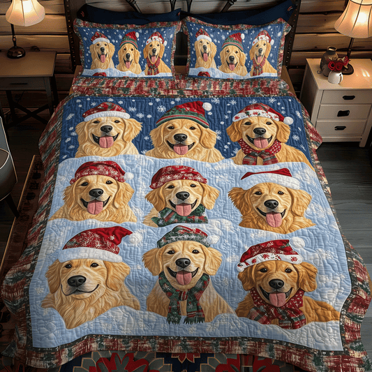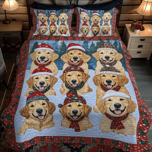 Golden Retriever Cheer 3-Piece Quilted Bedding Set NCU0TH1629