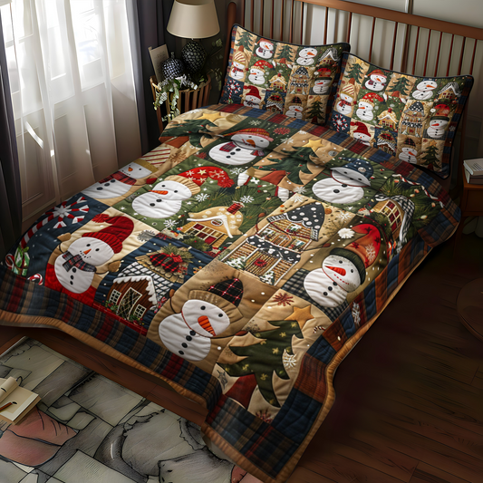 Snowman Delight 3-Piece Quilted Bedding Set NCU0NT034