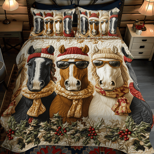 Christmas Horse 3-Piece Quilted Bedding Set NCU0DV1136