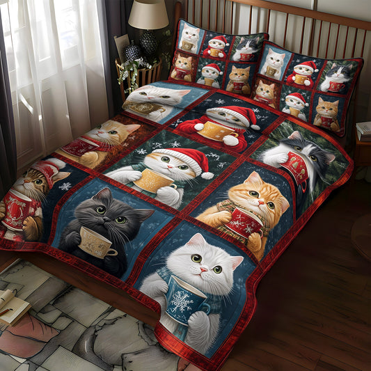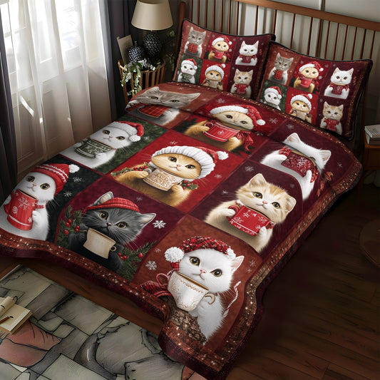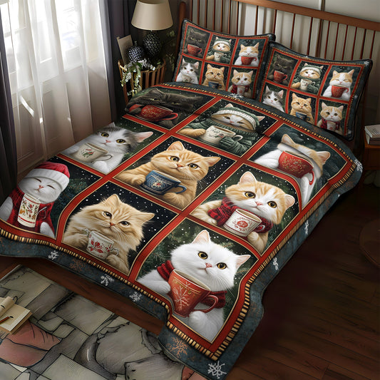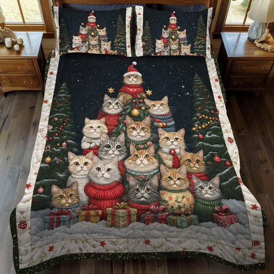 Cozy Christmas Cats 3-Piece Quilted Bedding Set NCU0TL1188