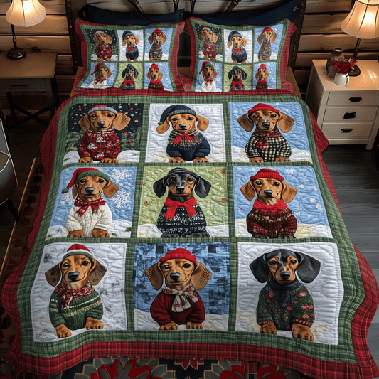 Doxie Winter Wishes 3-Piece Quilted Bedding Set NCU0TH1682