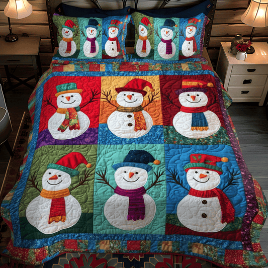 Xmas Night Snowman 3-Piece Quilted Bedding Set NCU0PD748