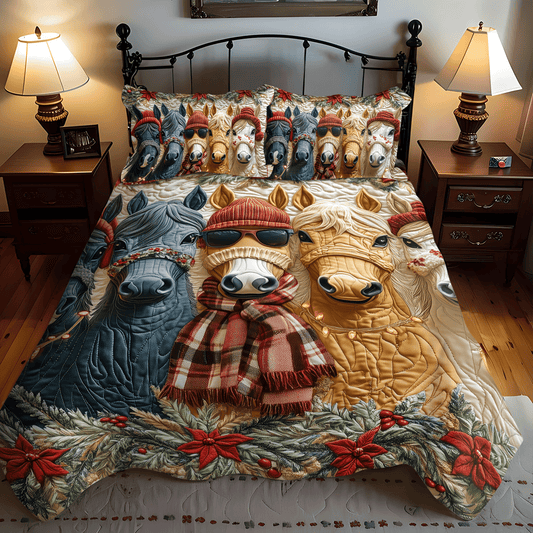 Festive Christmas Horse 3-Piece Quilted Bedding Set NCU0DV1139