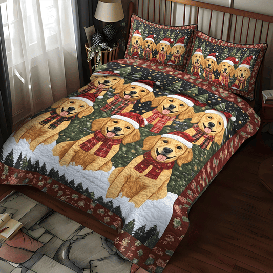 Golden Christmas 3-Piece Quilted Bedding Set NCU0TH1636