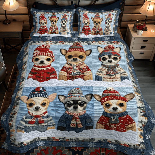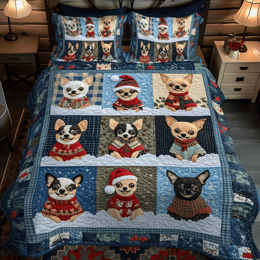 Yuletide Chihuahuas 3-Piece Quilted Bedding Set NCU0TH2055
