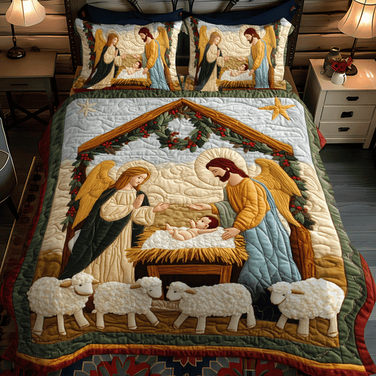 Nativity Scene 3-Piece Quilted Bedding Set NCU0TL1743