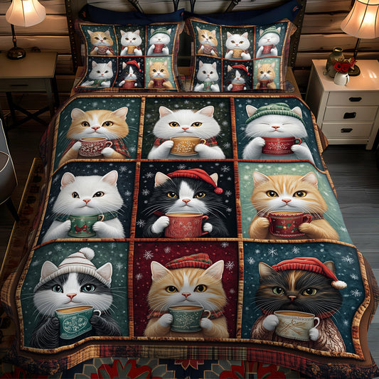 Cozy Christmas Cats 3-Piece Quilted Bedding Set NCU0TL1758