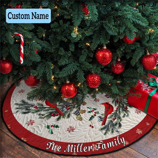 Festive Foliage Personalized Custom Quilted Christmas Tree Skirt