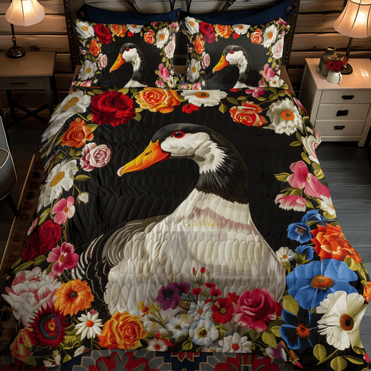 Floral Duck 3-Piece Quilted Bedding Set NCU0DV403