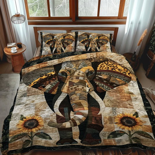 Rustic Sunflower Elephant 3-Piece Quilted Bedding Set NCU0TH899