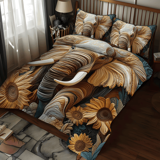 Elephant Sunflower March 3-Piece Quilted Bedding Set NCU0DV1162