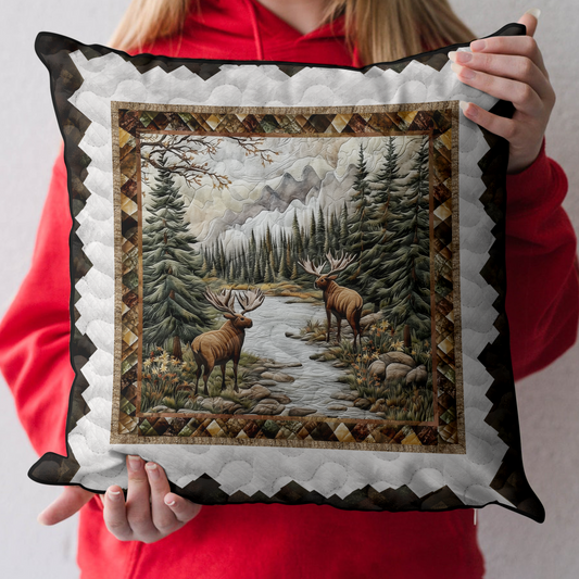 Mountain Moose Dreams Quilted Blanket NCU0DK3389