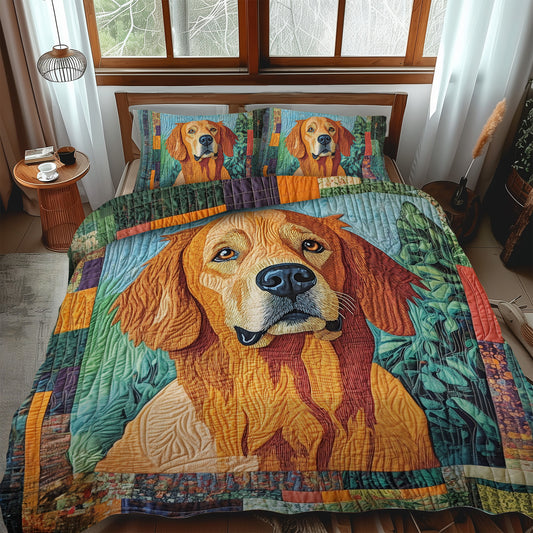 Golden Retriever in the Garden 3-Piece Quilted Bedding Set NCU0PT383