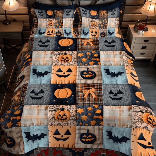 Pumpkin Patch Halloween 3-Piece Quilted Bedding Set NCU0PD802