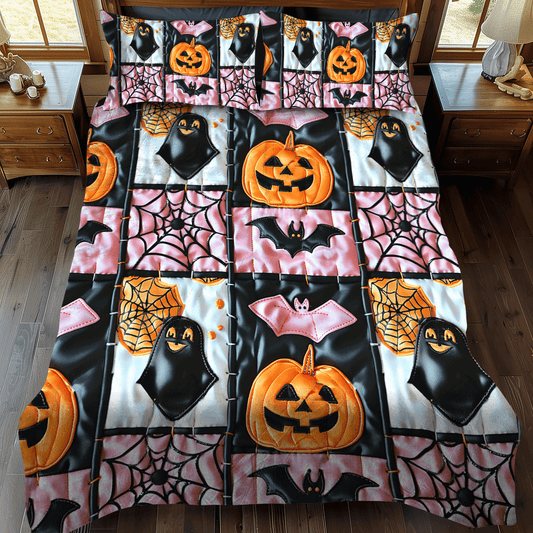 Spooky Skeleton Halloween 3-Piece Quilted Bedding Set NCU0PD806