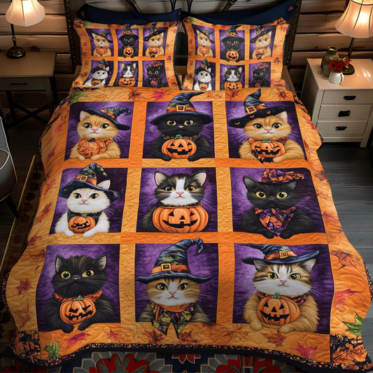 Witch Hat Kitties 3-Piece Quilted Bedding Set NCU0TL1174