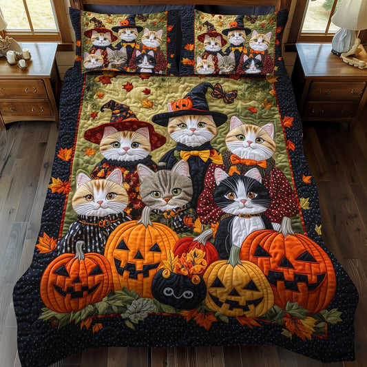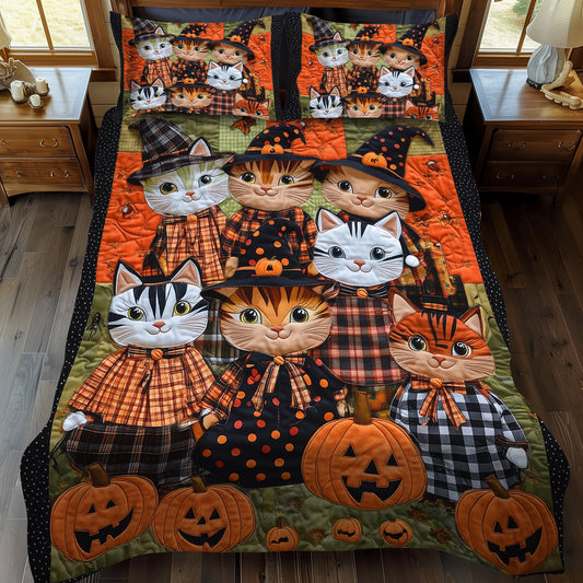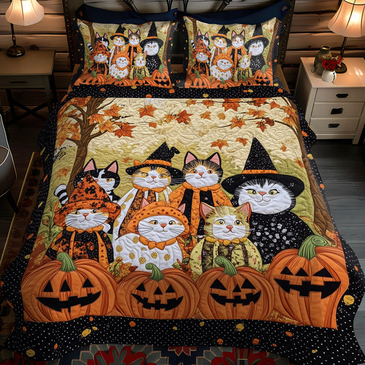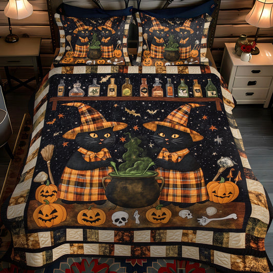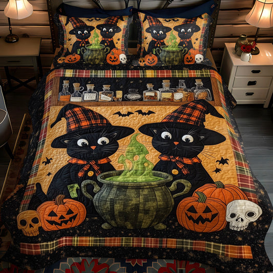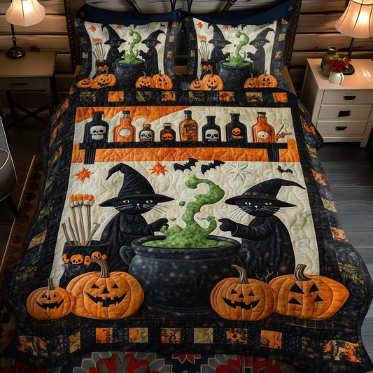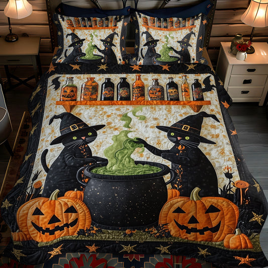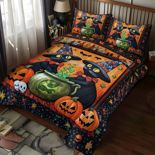 Cat Coven Halloween 3-Piece Quilted Bedding Set NCU0TH1655