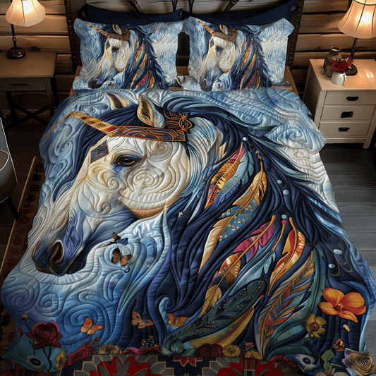 Vibrant Blue Horse 3-Piece Quilted Bedding Set NCU0PD343