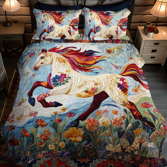 Elegant Horse Running 3-Piece Quilted Bedding Set NCU0PD573