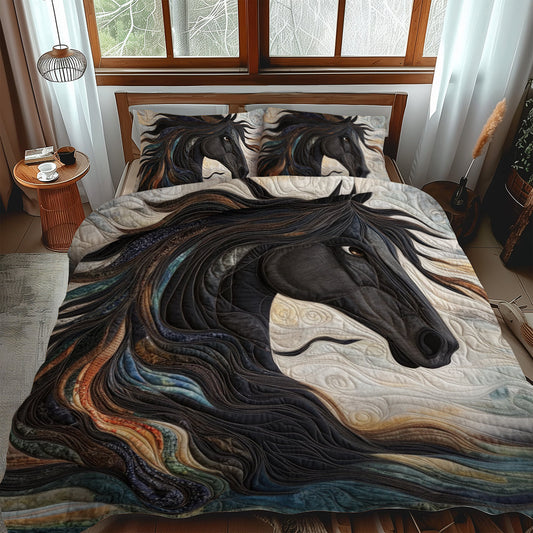 Artistic Mystical Steeds 3-Piece Quilted Bedding Set NCU0PD572