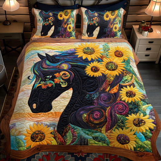Sunflower Black Horse 3-Piece Quilted Bedding Set NCU0PD584