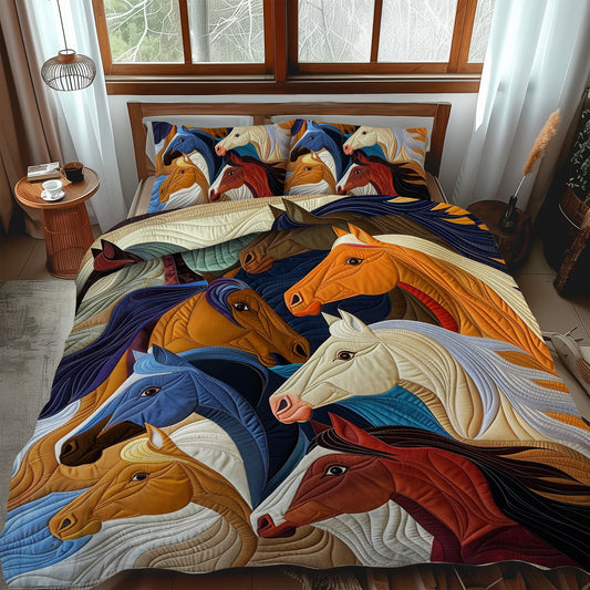 Vivid Horse 3-Piece Quilted Bedding Set NCU0PD173