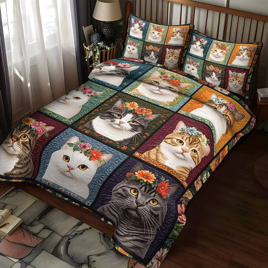 Flower Crown Felines 3-Piece Quilted Bedding Set NCU0TL1196