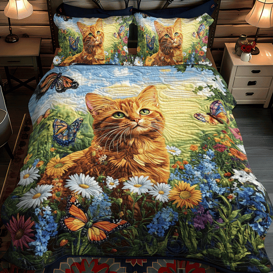 Daisy Butterflies Cat 3-Piece Quilted Bedding Set NCU0PD622