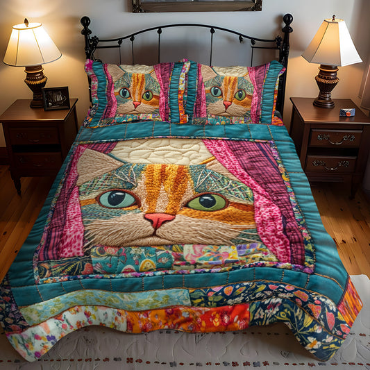 Vibrant Cat Peeking 3-Piece Quilted Bedding Set NCU0PD427