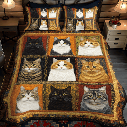 Cute Cat 3-Piece Quilted Bedding Set NCU0PD419