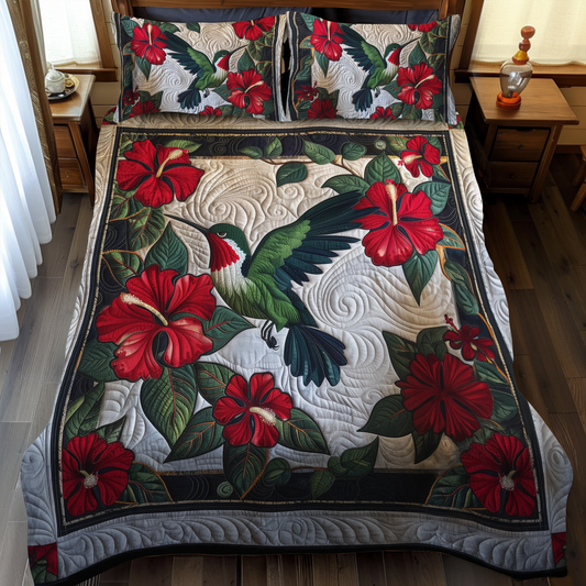 Vibrant Hummingbird 3-Piece Quilted Bedding Set NCU0DK8006