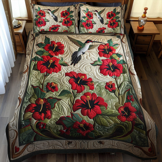 Red Bloom Radiance 3-Piece Quilted Bedding Set NCU0PT025